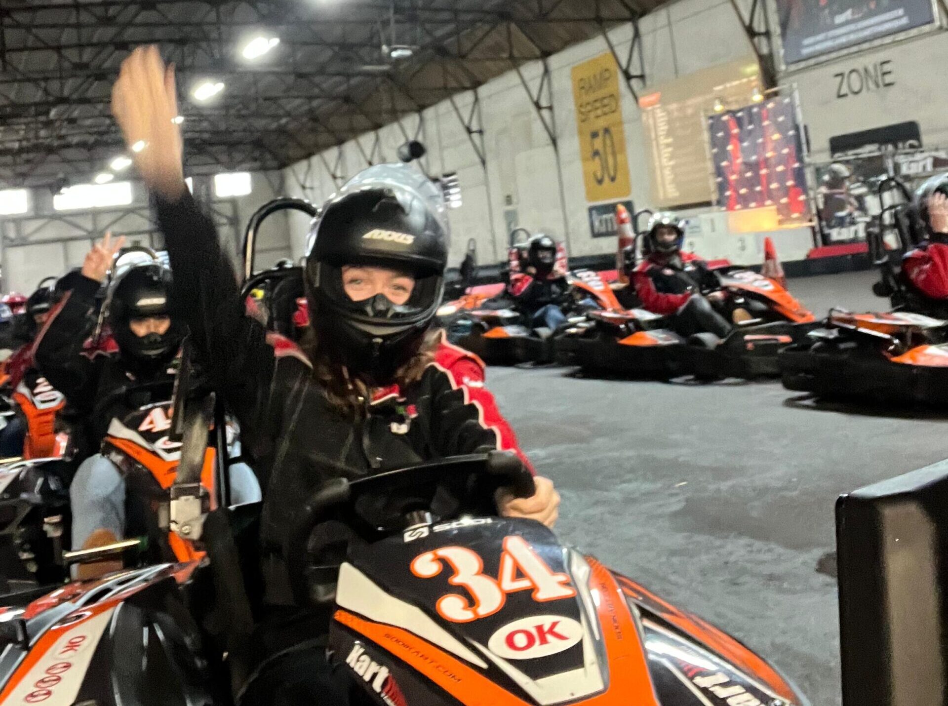 Na al dat denkwerk was het tijd voor een snelle pitstop om vervolgens het gaspedaal in te trappen op de kartbaan. De geur van benzine kwam ons al snel tegemoet bij het betreden van de kartbaan. Het geluid van gierende banden en de spanning van de start zorgden voor een flinke adrenalinekick in het team. Iedereen ging tot het uiterste om die ene perfecte bocht te nemen en net iets sneller te zijn dan de rest. Er werd ingehaald en hier en daar werd een bocht iets te scherp genomen, alles om maar zo snel mogelijk over de finish te zijn. De competitie was groot, maar de sfeer bleef sportief en gezellig.
